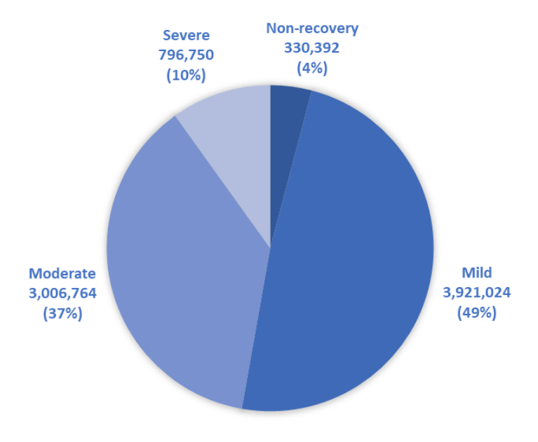 In the EU and Norway, 10% of procedures (796,750 in total) were severe, which is the same proportion of severe procedures as reported in 2019. The absolute number of severe procedures fell by almost 10%, from 884,186 in 2019, presumably because fewer animals were used overall due to the pandemic.
